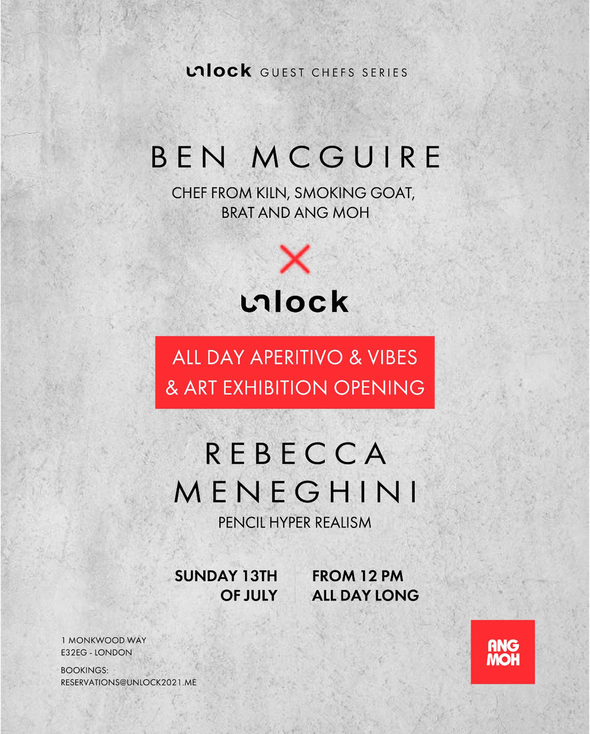 This summer Sunday, Unlock will host the third episode of its Guest Chef Series with the amazing Ben McGuire — chef with experience at Kiln, Smoking Goat, Brant, and founder of the ANG MOH street food concept. Ben will bring his unique vision of Italian–Thai fusion, in collaboration with our Main Chef Emanuele Esposito.